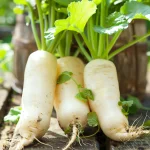Οι σπορές είναι λεπτές, λευκές, αρκετά μεγάλες και σκληρές ραπανάκια, που ωριμάζουν μετά από περίπου 80 ημέρες.
