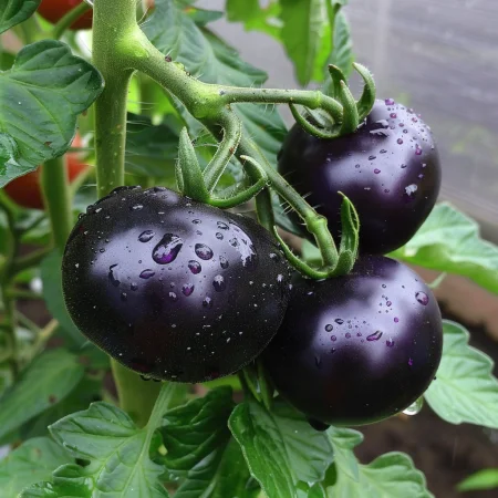 Μεσοπρώιμη ποικιλία ντομάτας με χαρακτηριστικό σκούρο κόκκινο έως σχεδόν μαύρο χρώμα και πυκνή, αρωματική σάρκα.