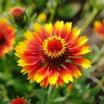 Πολυετές διακοσμητικό φυτό με έντονα κόκκινο-πορτοκαλί άνθη και χρυσό κέντρο, που δημιουργεί έντονη χρωματική αντίθεση στον κήπο.