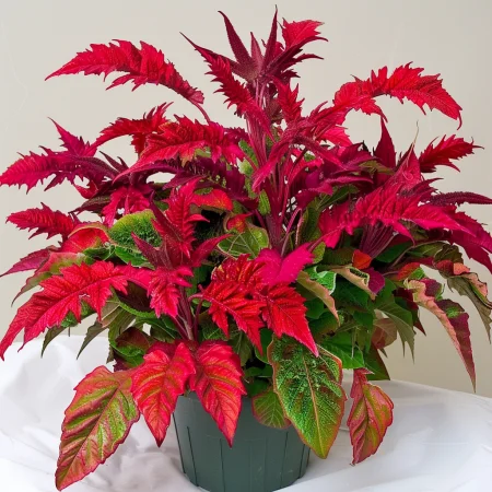 Η υψηλή διακοσμητική του αξία οφείλεται όχι μόνο στα άνθη – σκούρο κόκκινα, πορφυρά, ροζ, πορτοκαλί, κίτρινα και λευκά – αλλά και στα φύλλα, που είναι βαμμένα σε κόκκινο, βιολετί, κίτρινο ή πράσινο.